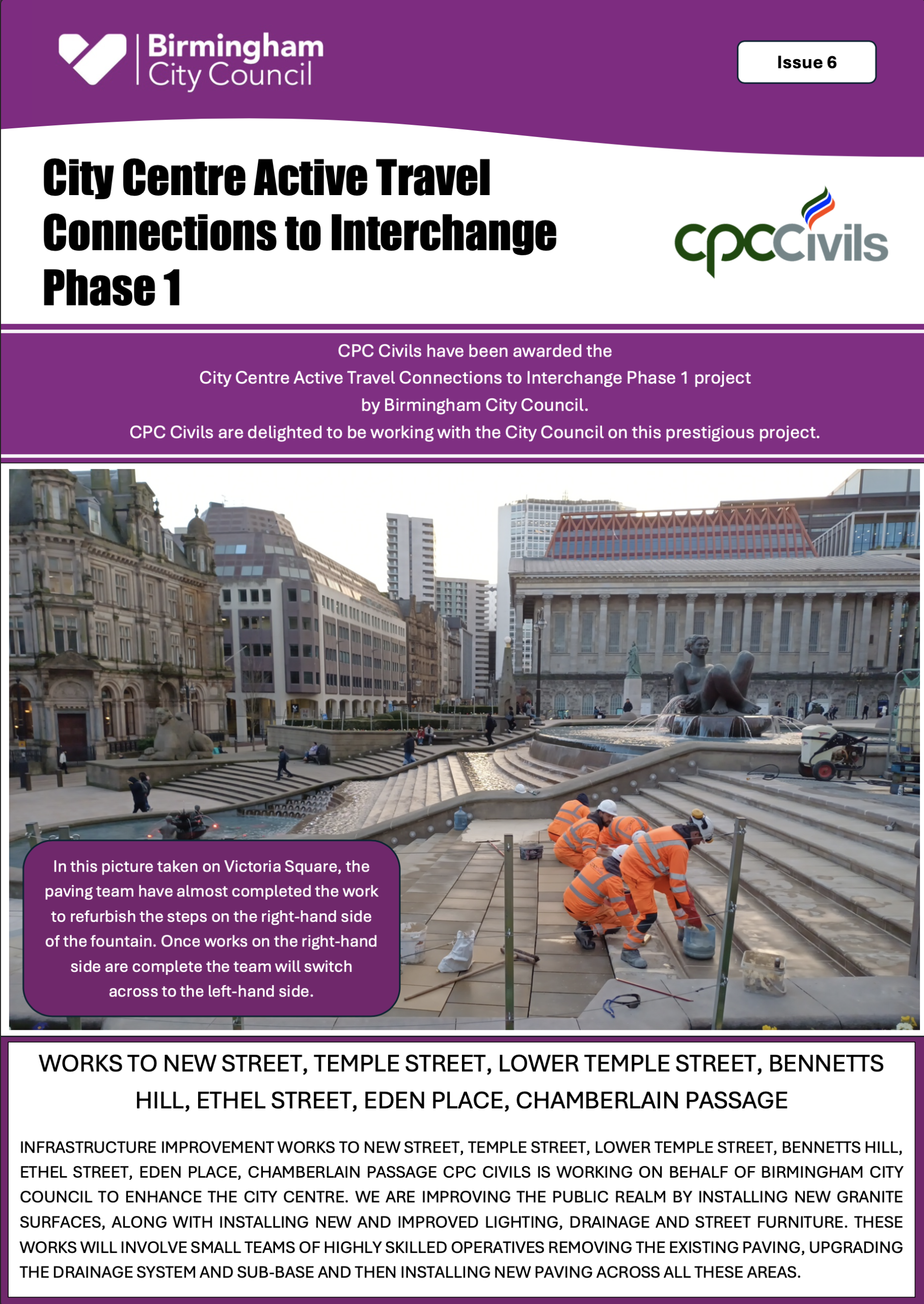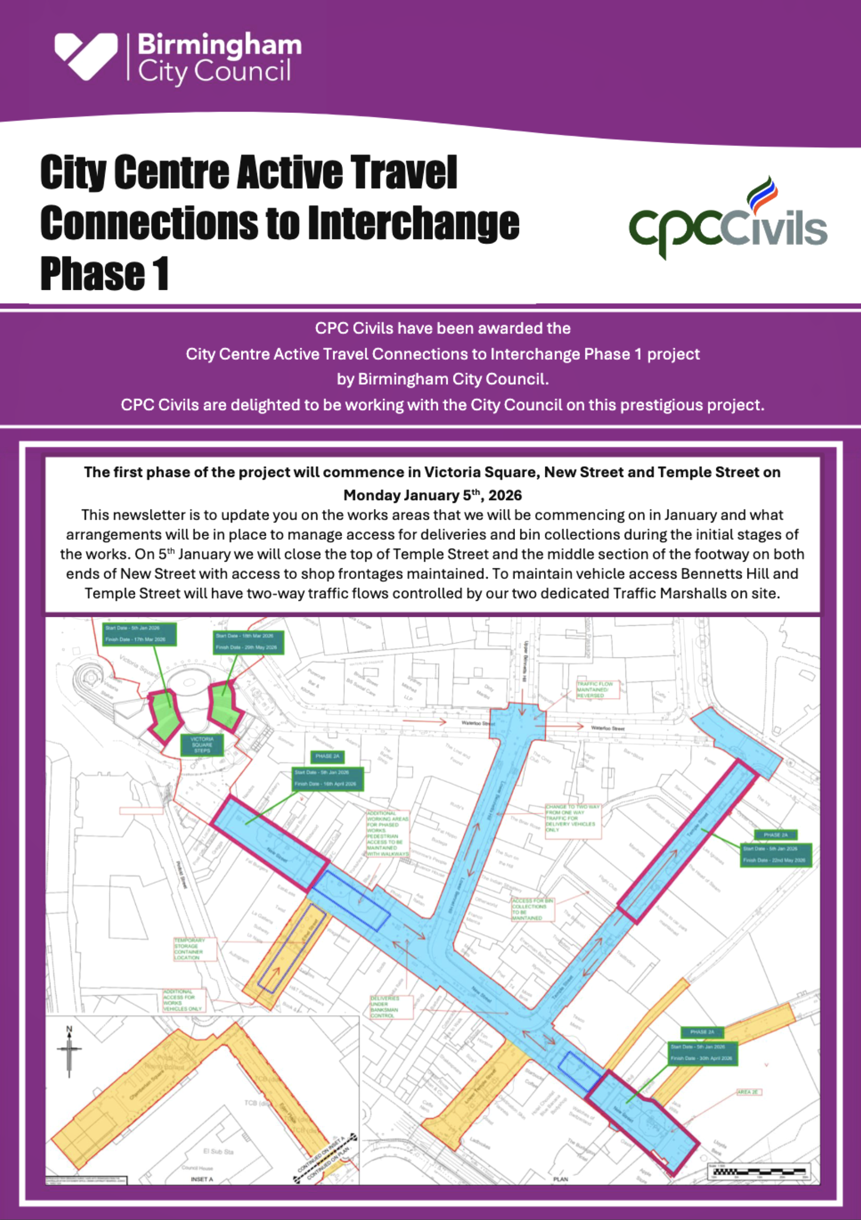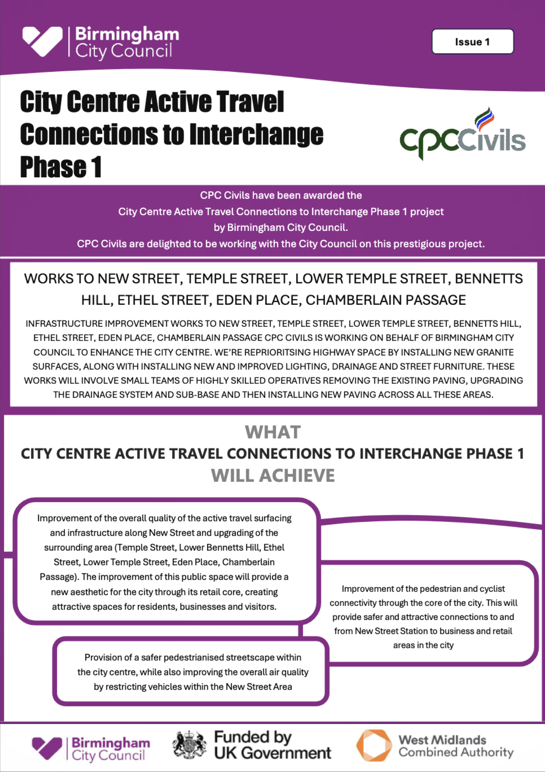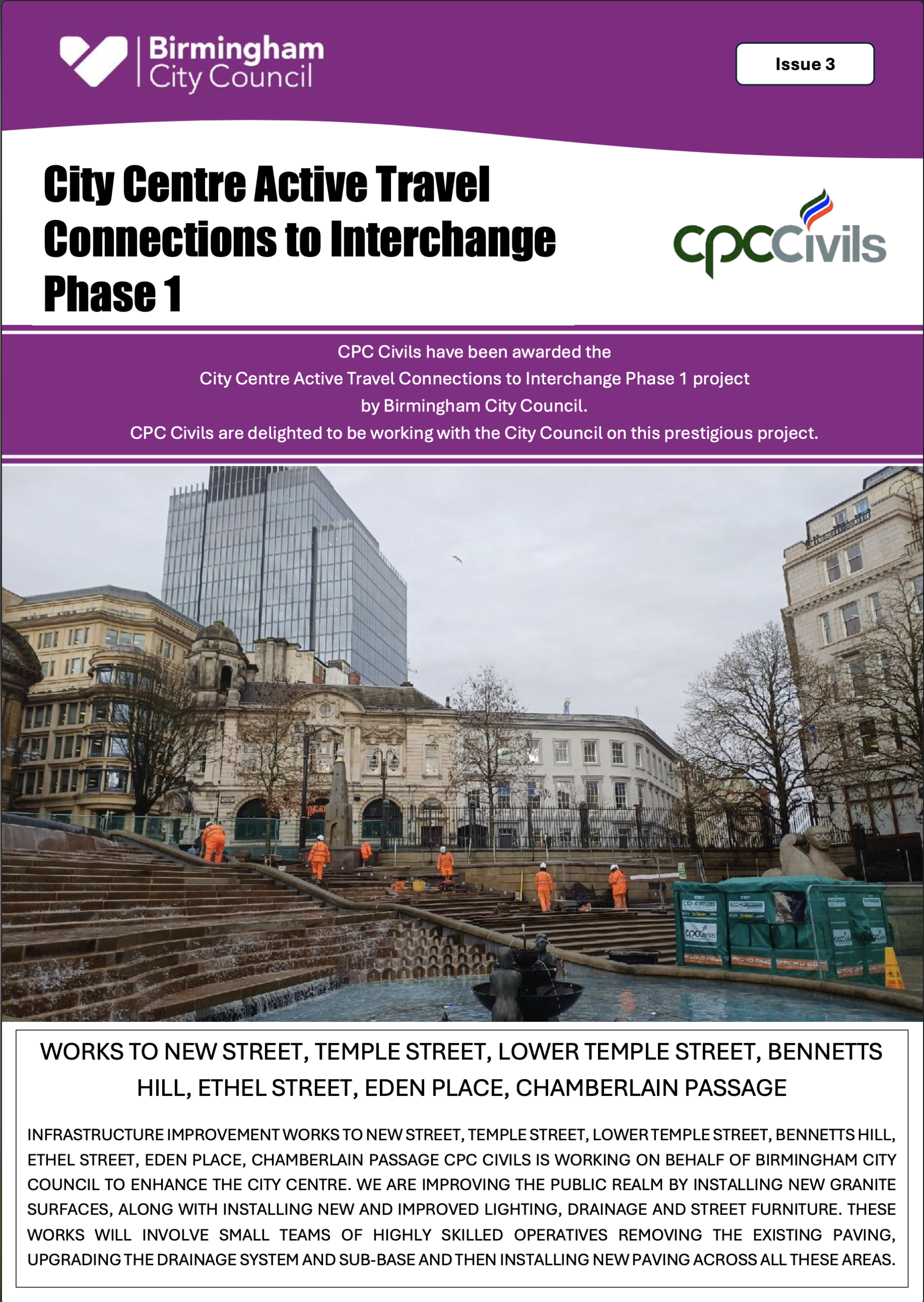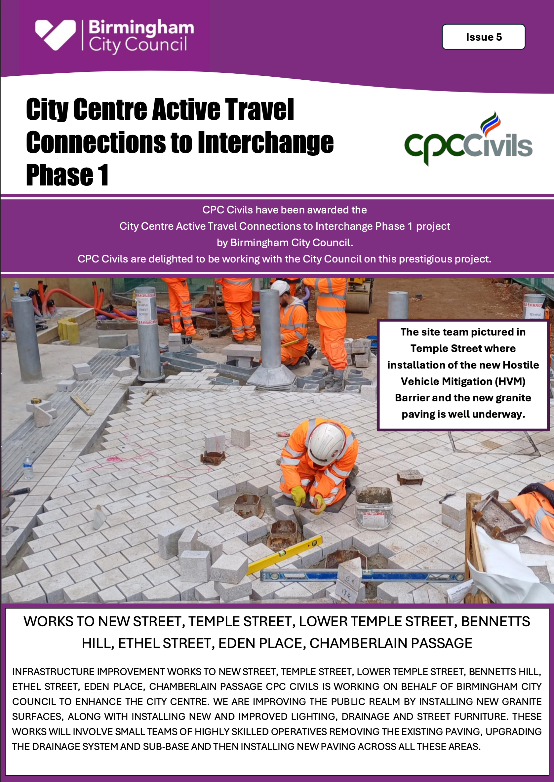 The works programme will also include permanent and less intrusive hostile vehicle security measures (HVM) as part of a comprehensive safety and security strategy for the city centre.